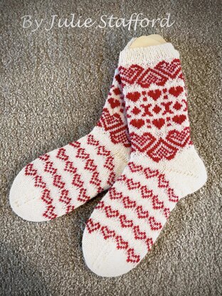 Cosy Hearts pdf knitting pattern. a full pattern to make the socks using 4 ply sock yarn.