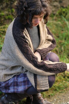 This generously sized wrap is perfect for keeping you cosy on those cool autumn days The diagonal front panels overlap – allow them to flow open for a relaxed look, or close with a shawl pin. The wide batwing sleeves make this a good cardigan to wear as an outer layer.
