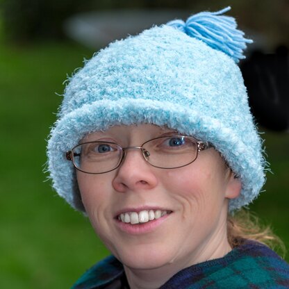 I loved using this yarn, which is so tactile, soft and fluffy, it was difficult to count my rows and stitches to get the tension information for the pattern, as you can't really see the stitches at all. I also love the fact that, using Robin Fleece yarn, you only need one ball to make this hat. A simple cowl to accessorise with it would only require one ball, too.