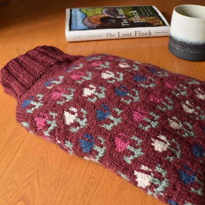 This knitting pattern is designed for DK wool, and there are instructions for two sizes, and information on how to fairly easily adapt it for other sizes of hot water bottle. It also has charts for two flower designs - tulips or poppies. The small bottle takes 50g of main shade, and the larger bottle 90g of main shade. You will also need small amount of wool for the flowers and leaves.