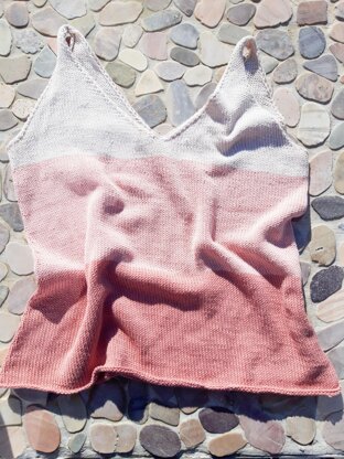 The Cotton candy sleeveless top is a very simple yet stylish V-neck top that fits in every essential wardrobe and is a basic pattern, that, thanks to its simplicity, is especially suitable for beginners. It is knit from the bottom up in the round, with regular decreases all the way up until the armhole to create an A-Line shaping.