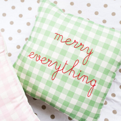I wanted to create a kit for you to be able to stitch your own Christmas Cushion and this is what we have come up with! Super simple, this beautifully made cushion comes ready made, with the printed phrase ready for you to stitch on to it. We use just one simple stitch that you'll pick up in no time and use to create a Christmas heirloom that you'll get out year after year. The fabric of the cushion is a lovely heavy weight cotton, printed with the gingham pattern and the Christmas phrased. We included red cotton thread for you to stitch with, and the instructions are printed clearly on the inside of the packaging.