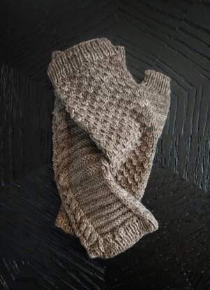 Knitting comes in many textures: lacy, fuzzy, drapey, plush -- but rarely scaly. These fingerless mitts use deceptively simple stitch clusters, cables, and garter ridges to mimic the back and belly scales of the rugged-yet-lithe cottonmouth snake. The Cottonmouth Mitts are knit flat from arm to fingers then seamed up the outer edge; the result is an easy knit with striking results, no snake charming required.