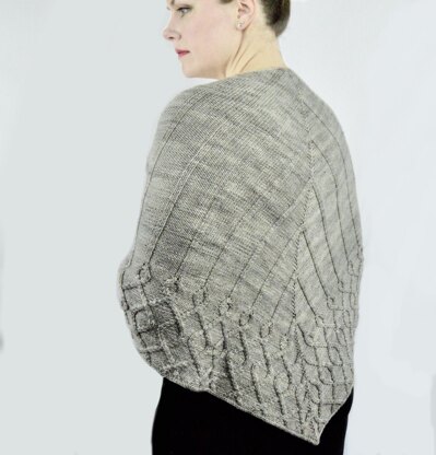 Couloir is inspired by the beauty of Arizona. Arizona has an incredible beauty all its own, breathtaking sunsets over desert landscapes, winding rivers that carve beautiful twists and turns along the landscape. This unique land of vast open space and intricacies created by nature itself inspired this shawl, which represents the never-ending horizon, surrounded by rivers and plateaus.