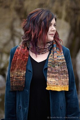 This scarf was designed to use 22 colourways of Koigu 'Minis' (using 2 skeinettes of each colour) and to use up all the yarn. If you are using a different yarn or working at a different tension, you may require additional yarn to reach the size listed.