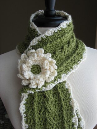 Finished Scarf measures 58" long and 6" wide Flower Blossom pattern also included.