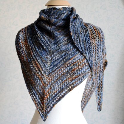 This shawl is meant to be knit by any knitter, from the adventurous beginner to the advanced knitter looking for a simple and pretty work. It's an adaptable shawl that can be made with any yarn and any yardage. Knit, purl, knit two together and yarn overs are all you need to know to create this simple and beautiful triangular shawl.