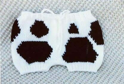 What an adorable child! That is the compliment you will hear when your child wears these! Cow design is knit in, and pants are an easy fit, easy shaping! Fits from 2 yrs to 5 yrs. This is fun summer wear, with a drawstring waistband. We used worsted weight yarns, knitting needles, US # 7, and # 9. It goes rather fast, so make a few pair of pants in plain colors too!