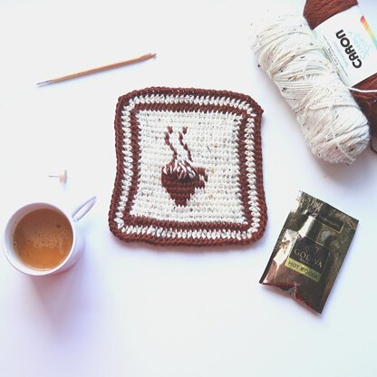 Pattern Notes: This pattern is for a winter-themed colorwork Tunisian crochet square that is worked bottom-up using size 4 worsted weight yarn in contrasting colors. The bobble stitches add texture and are inspired by marshmallows in a cup of hot cocoa.