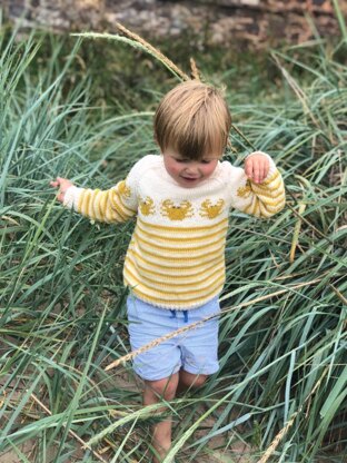 This is a fun jumper for chidren with crabs sidestepping round the yoke. I first designed the cream, striped version nearly three years ago. So many people asked me to make them one that I have recorded the method and added a plainer version. There is a front neck opening to make dressing easier and the jumper has a neat but still comfortable fit. It is knitted in Debbie Bliss Rialto DK, a soft merino in a wide range of colours, and sizes go fro 1 to 6 years of age. The shaping on the raglans and the neck allow you to make a neat stitch pick up. A chart is included and precise instructions for placing the crab design are given for each size.Above all, children look super cute in it and love wearing it.