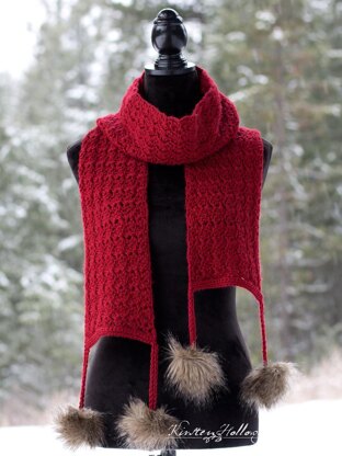 This pretty winter scarf project is quick and easy to crochet. It is soft and warm with plenty of gorgeous drape and would be a perfect accessory to wear on Valentines Day or a winter date night. A tutorial is included for creating your own faux fur pom-poms.