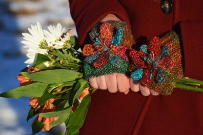 So this week, I knitted my flowers. I put them on some little mitts to keep my fingers warm while the snow melts.