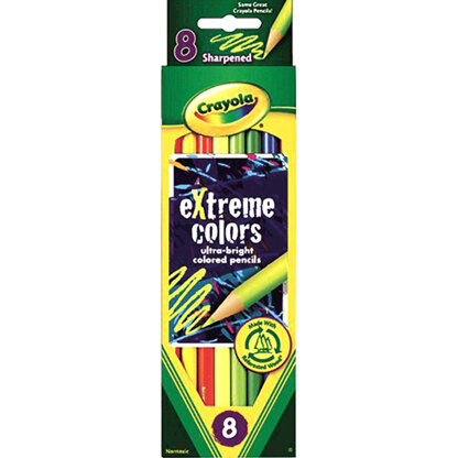 CRAYOLA-Extreme Colors Colored Pencils. This set features ultra- bright extreme colors! This package contains eight colored pencils. Nontoxic. Conforms to ASTM D 4236. Imported.