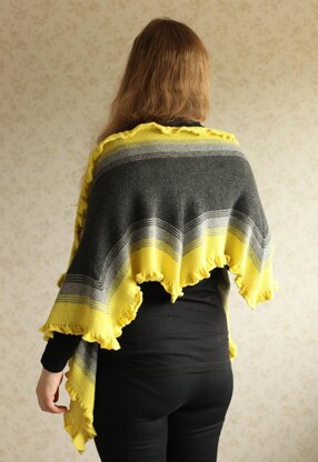 In the model shawl color A is dark gray, color B is middle grey and color C is yellow.
