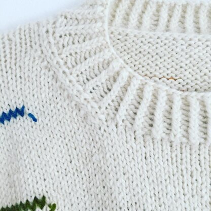 This sweater is a plain one that goes with everything, but we wanted to use Leftover Yarn to make it even more special (instruction on how to make duplicate stitch inside) Become a Leftover Lover!