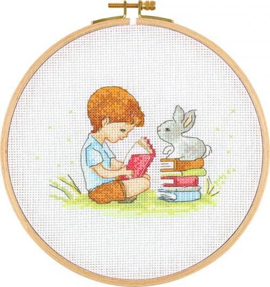 Creative World of Crafts Reading to Rabbit Cross Stitch Kit - 26cm Diameter