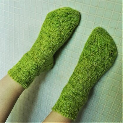 The inspiration for these socks is obvious as it is literal, lots of little leaves, covering the socks, adding texture and interest, both to the wearer and the knitter