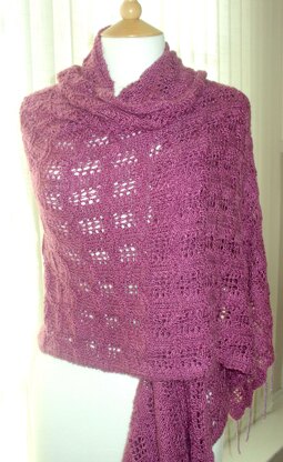 An pretty lace pattern using pure silk yarn, and a beaded fringe gives this wrap a luxurious feel, perfect for evenings or special occasions. Any yarn knitting to the same tension can be used, or a different tension for a different size for the finished wrap.Silky type yarns with a good drape work best.