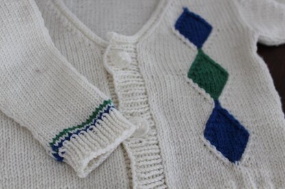I imagine this crisp, classic sweater to be perfect for watching a game of Cricket, or taking a stroll - or for everyday fun and games. The sample was made using a machine washable bamboo & acrylic for a lightweight sweater - but would be lovely in a washable wool for cooler weather.