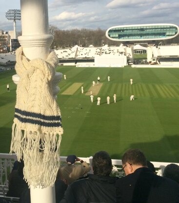 This scarf takes the smooth cables of the traditional cricket sweater and turns them into a scarf. The stripes at either end mean that you can make this in team colours. The cables are ribbed making this a reversible piece.