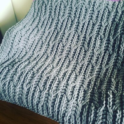 THIS IS A LOOP YARN FINGER-KNITTING PATTERN. The Criss-Cross Applesauce Blanket is a repeating pattern of criss-cross stitches, creating a network of interwoven cables. This pattern is easier than it looks! NOTE: While this pattern is written for Alize Puffy yarn, UK knitters can substitute Bernat Alize Blanket-EZ yarn for a blanket of approximately the same size - you will only need 5 skeins.