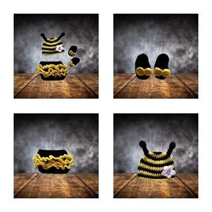 buzzzzzzzzzzzzz,,,,It really doesn’t get any cuter than this little outfit. Such an easy little set to make, great for your next baby shower, perfect for those prop pictures, baby’s first halloween, or just to see how darn cute she is in this bumble bee set. Pattern is written in US terminology. Written for sizes Newborn and 0-3 Months. Pictures also in the pattern. Very little yarn, and tons of fun. Easy to read pattern will have you wanting to make all kinds of these adorable costumes.