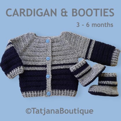 Crochet Pattern baby cardigan and booties set. ♥♥♥ The pattern is for baby size 3 - 6 MONTHS. The pattern is written in US crochet terms but with a conversion at the beginning of the pattern to UK / Australian terms. Its just that some of the names of the stitches are different. Materials & tools you will need: ★ Acrylic or other yarn 120 gr approx. - DK, Double Knitting in UK, Light Worsted in the USA, 8ply in Australia. ★ Crochet hook sizes recommended 4 mm and 5 mm. ★ 4 buttons. ★ Yarn needle to weave in ends (optional).