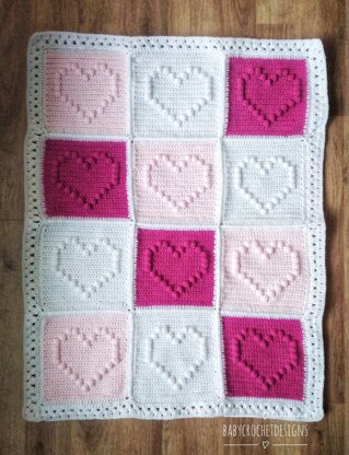This is a crochet pattern to make a bobble heart blanket with written instructions and photos, that I designed myself.