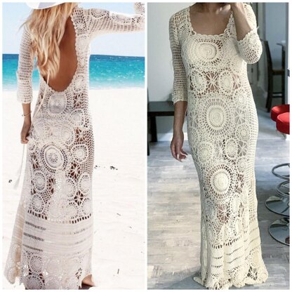 This crochet effortlessly chic dress gives you a bohemian way to wear this season’s see-through trend. The delicate open back neck line and soft scallop detail give fabulous dreamy essence. It can be worn either as cocktail dresses or cute casual style piece or swim/beach coverup.