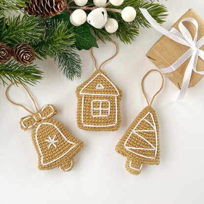 Crochet Christmas gingerbread ornaments pattern Amigurumi holiday decor