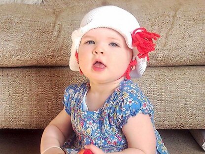 Hat in 5 sizes to fit head measurements as below 0-3 months (37cms/14.5in), 3-6 months (39cms/15 3/8in), 6-12 months (42cms/16.5in), 1-3 years (48cms/18 7/8in), 3-10 years (52cms/20.5in).
