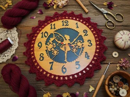 - “Use macramé cord; 5 mm hook; wooden clock and clock machine required; scissors needed; tapestry needle for finishing optional.”
