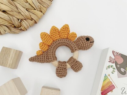 Crochet dinosaur baby rattle teether toy crochet pattern Stegosaurus