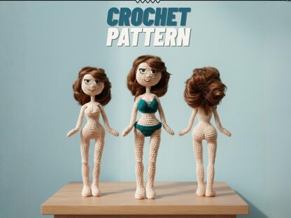 Create your own amigurumi female base doll with this detailed crochet doll pattern PDF.