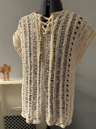 This crochet pattern is for a baggy men's sleeveless shirt with a V neck. It uses a Crocheted Drop Stitch (CDS) to create stripes of long loops that give a loose mesh finish. The special stitch has a tutorial for you to follow. The design is made sideways and from the centre outwards, to make easy vertical stripes. The pattern was designed using an aran weight linen/cotton mix. The garment is made in two pieces and then sewn together. The instructions include lots of detail to ensure complex shaping is made easy. There is a lot of stretch in the finished item, so the sizing is only approximate. I have listed this pattern as "Intermediate" because of the pattern techniques. You are purchasing the .pdf pattern only, which includes full written instructions. One purchase gives you all sizes. The pattern is colour coded for the different sizes.