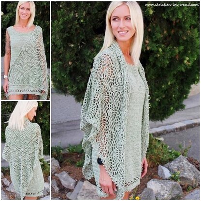 This crochet set includes a breezy summer dress and matching triangle shawl – light, flattering, and perfect for warm days and beach vibes.