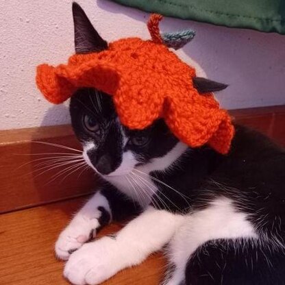 This pumpkin hat is the perfect spooky costume for your kitty. It can fit on any cat, large or small and will always look adorable! Although it is a fairly simple pattern, you will need to have very basic sewing skills. It will only take an hour or two to make, meaning you can get it done in time for halloween. Enjoy!