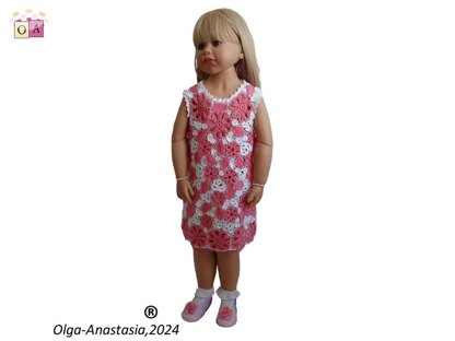 Crochet lace dress for girls . Modern crochet Irish lace pattern . A detailed pattern for all crochet motifs - a graphic diagram, a photo and a verbal description of each crochet row. PDF file for 86 pages Design work by Starostina Olga.