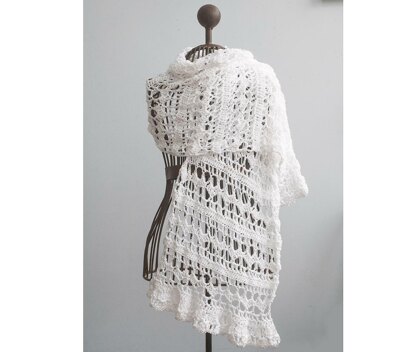 A lovely, lacy shawl with a little ruffle on each end. The pattern is not difficult, suitable for an intermediate crocheter or an adventurous beginner. It can be made with almost any sock or lace weight yarn.