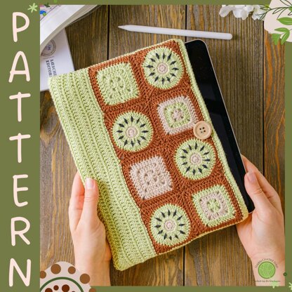 You’ll love this vibrant crochet iPad case! The front features playful crochet motifs worked in the round — half are adorable juicy kiwis, and the other half are timeless granny squares. The back and part of the front are crafted in simple single crochet stitches, making it an enjoyable project for both beginners and advanced beginners. More than just a case, it’s a fun way to use up leftover yarn and showcase your crochet skills.