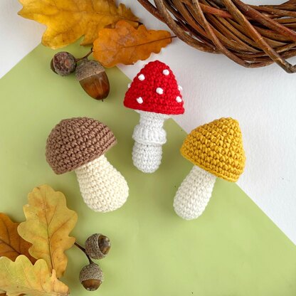 Crochet mushrooms pattern no sew Amigurumi keyring Autumn decor crochet ornament Car mirror hanger Bag charm keychain