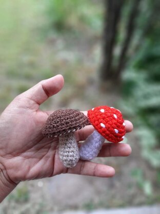 Crochet mushrooms Red Amanita and Shitake, for making key ring, car charm, toys, baby mobile