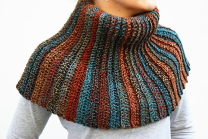 Enchanting colors paired with simple crochet stitches ensure an accessory that delights from start to finish. This cosy neck warmer is easy to crochet and perfect to protect you from the cold. Worked in one piece and sideways.  Terminology used: US+UK.  Crochet diagram (chart), written instrucion and step-by-step tutorial included.  Yarn: Lion Brand Tweed Stripes Yarn