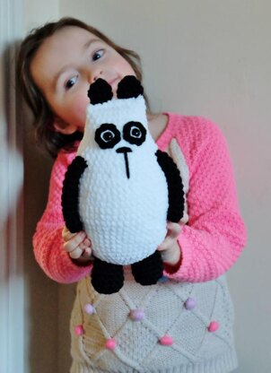 This cute panda is my own design, when finished measure's 12" tall ( when using the recommended yarn and hook size ) He is super soft and squishy and makes a fab toy to cuddle.