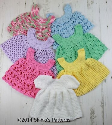 A plain dress with a choice of 6 different apron to go over them, how sweet
