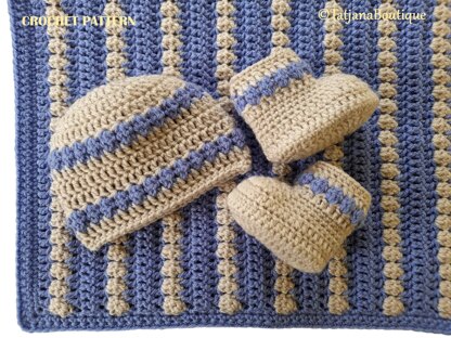 Crochet Pattern for Baby Blanket, Hat and Booties