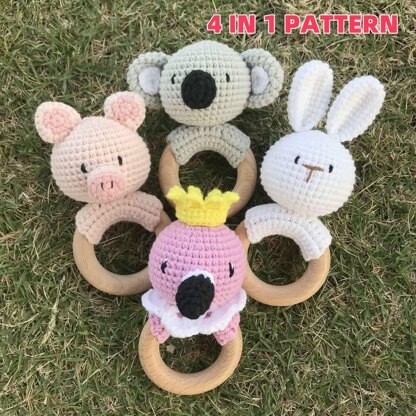 Crochet Patterns,Crochet Rattle Patterns 4 in 1: Bunny, Koala, Flamingo and Piggy,Amigurumi Crochet,Easy Crochet Patterns for Beginners