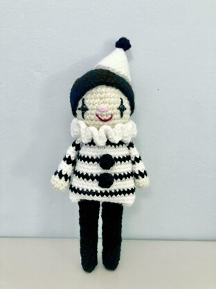 This listing is for my original crochet Pierrot Clown pattern. The pattern is super easy to make, I have included lots of photo to help you along the way! The finished Clown measures 11 inches tall, and 4.5 inches wide. Materials: Worsted Weight yarn: Off-White, White and Black Poly-fill stuffing One pair 9.00 mm black Safety Eyes Size G crochet hook Yarn Needle Scrap of Pink and Red yarn for nose and mouth Techniques: Single Crochet single crochet 2 stitches together (decrease) single crochet twice in the same single crochet stitch (increase) My Pierrot Clown is super fast and easy to make!