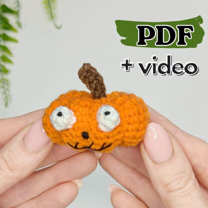 The pattern includes detailed instructions, pictures and links to video tutorials on how to crochet and assemble all the pieces to make this funny little pumpkin.