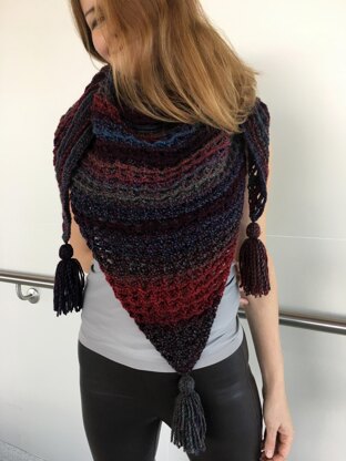 I LOVE this shawl. It has big tassels, is versatile and looks just lovely.